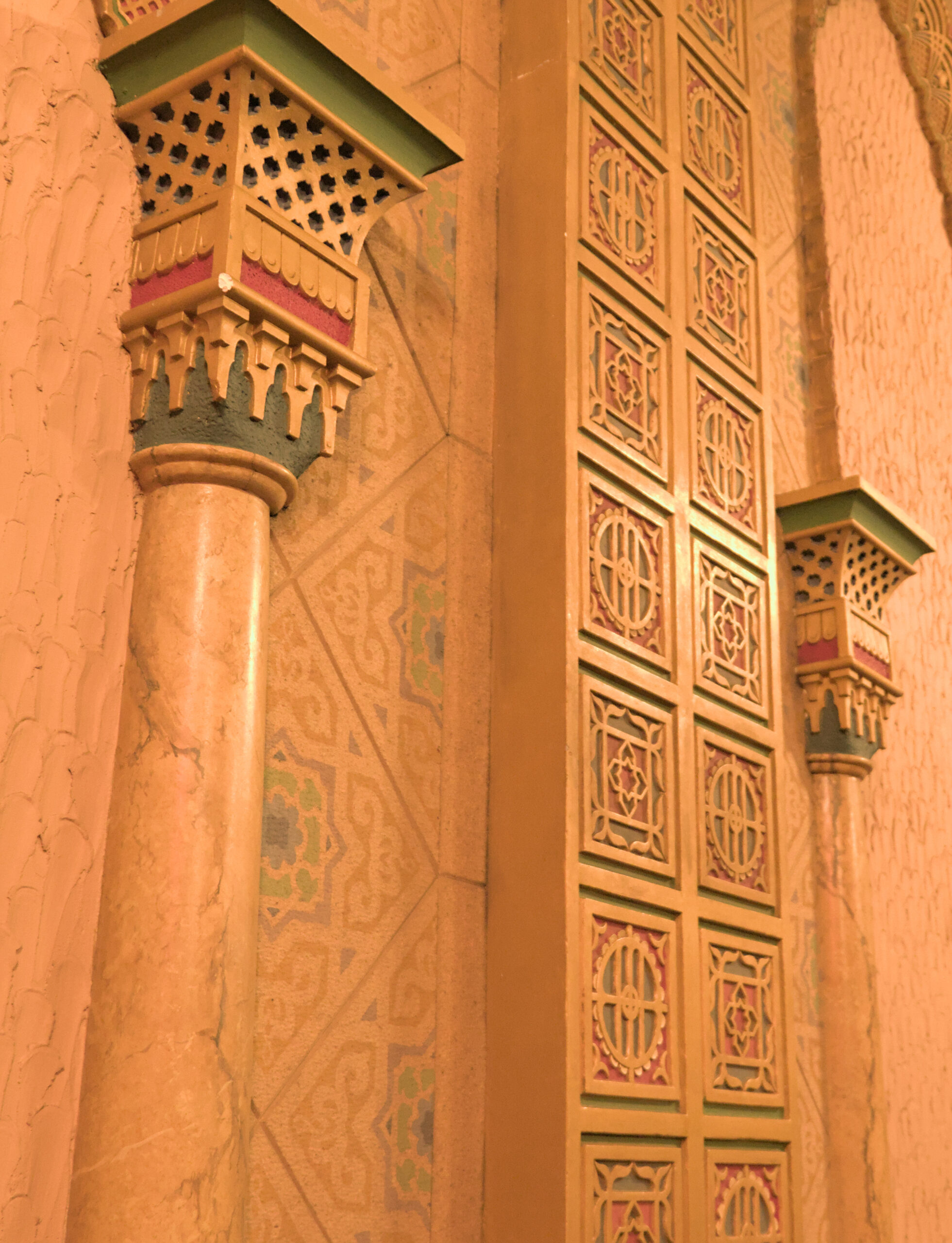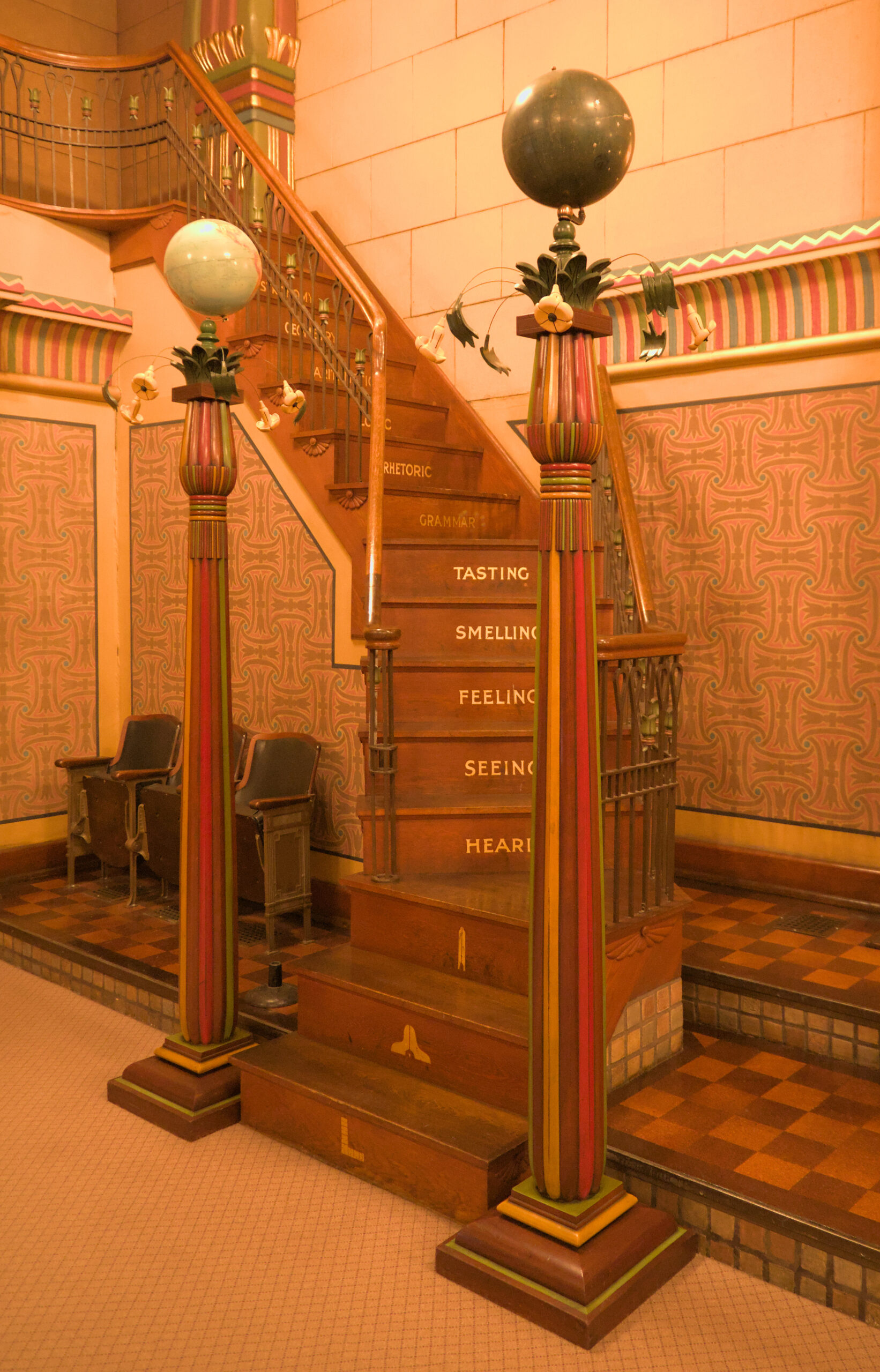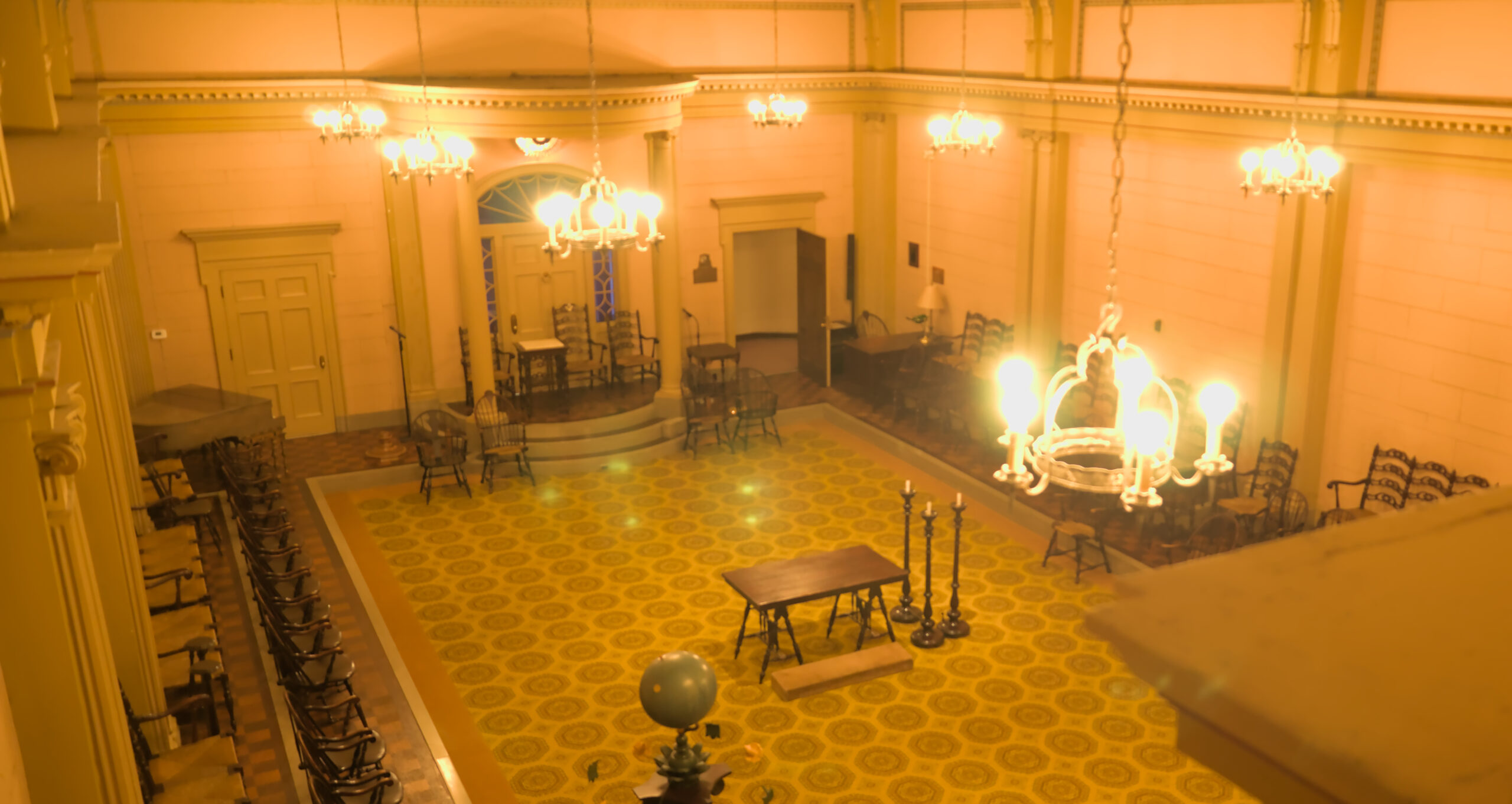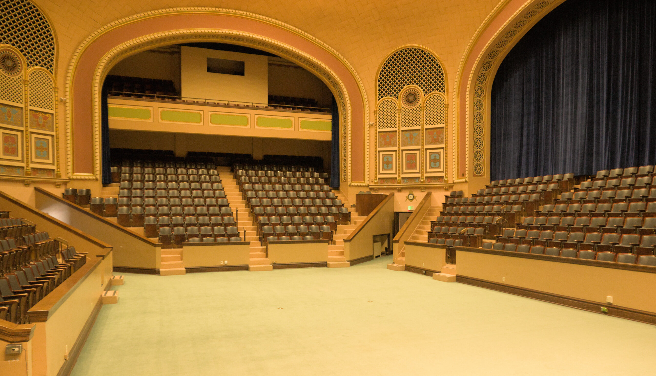 In the lodge there are several rooms to perform the rituals, or meetings, or appointing of new members. I was a DeMolay back in high school, but I wasn’t very active. I enjoyed it, but my mind was usually on riding my bike, or finding a way to “pass” a class with out doing more homework. The next room was an Egyptian themed room (and it was also called “The Egyptian” room). I took a few pictures in there, but they’re not worth pointing out individually. The colors were good in person, but my white balance made all these images appear to be very yellow (It was very yellow in there, due to the old lighting, architecture, and colors from when this building was built).