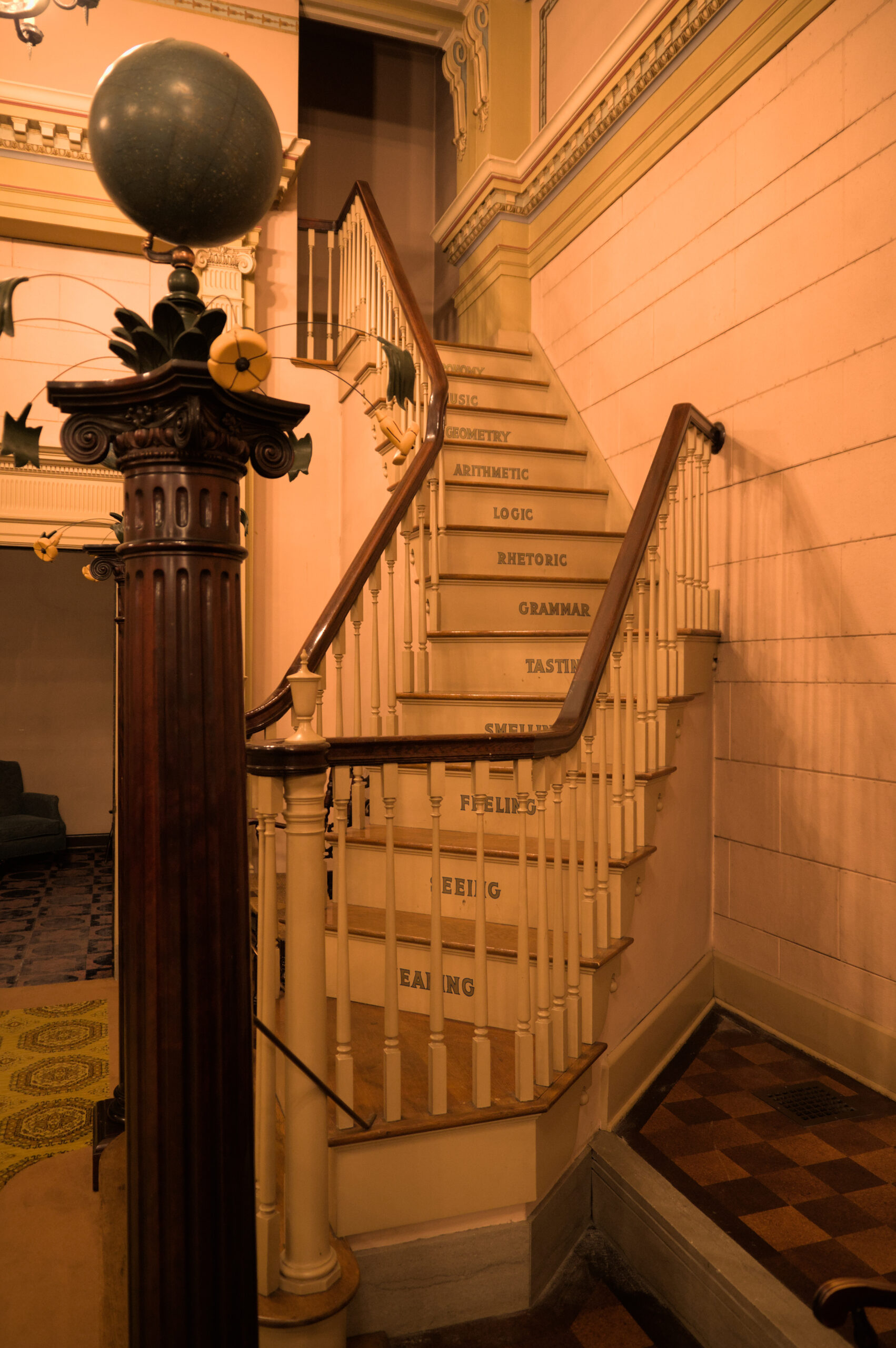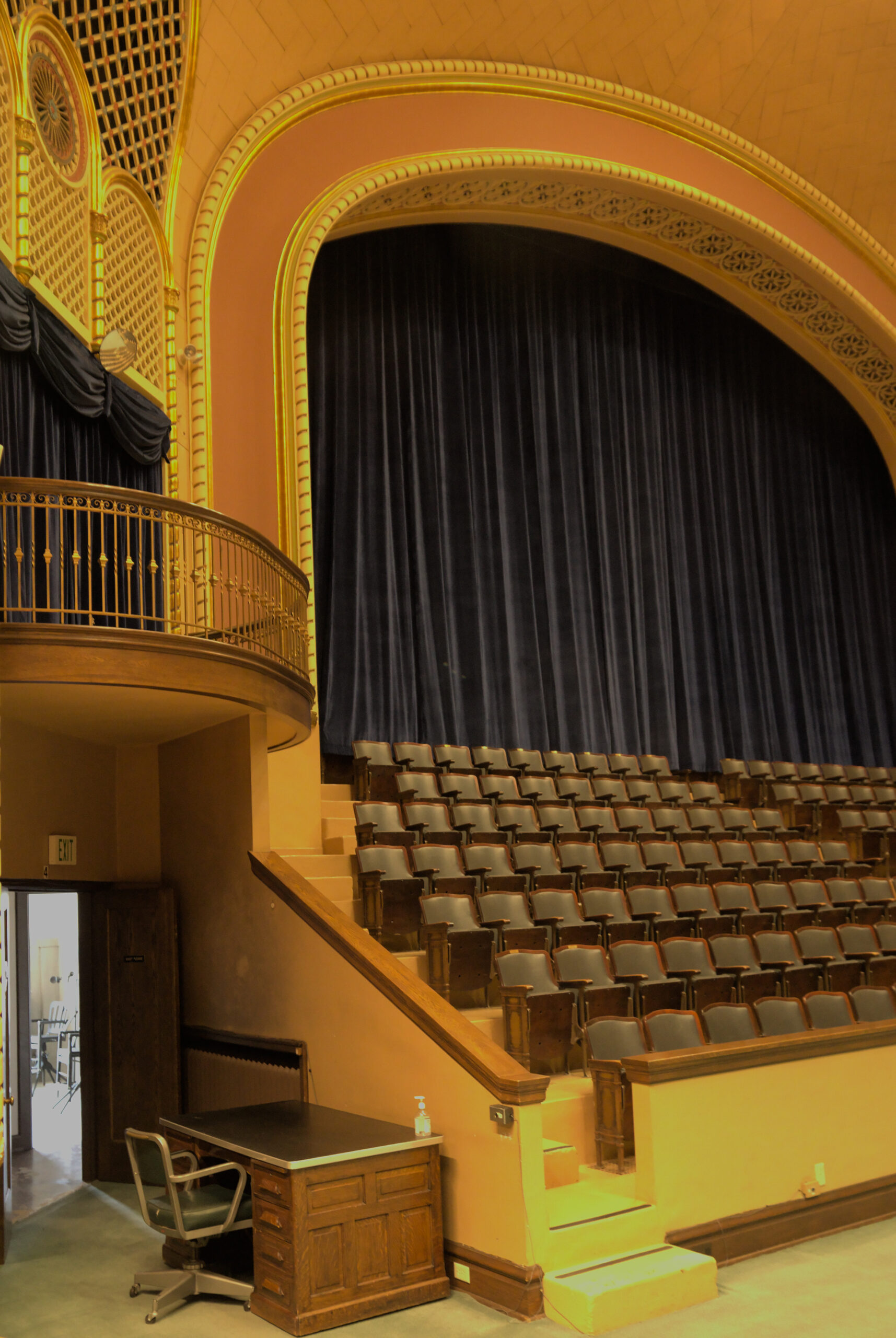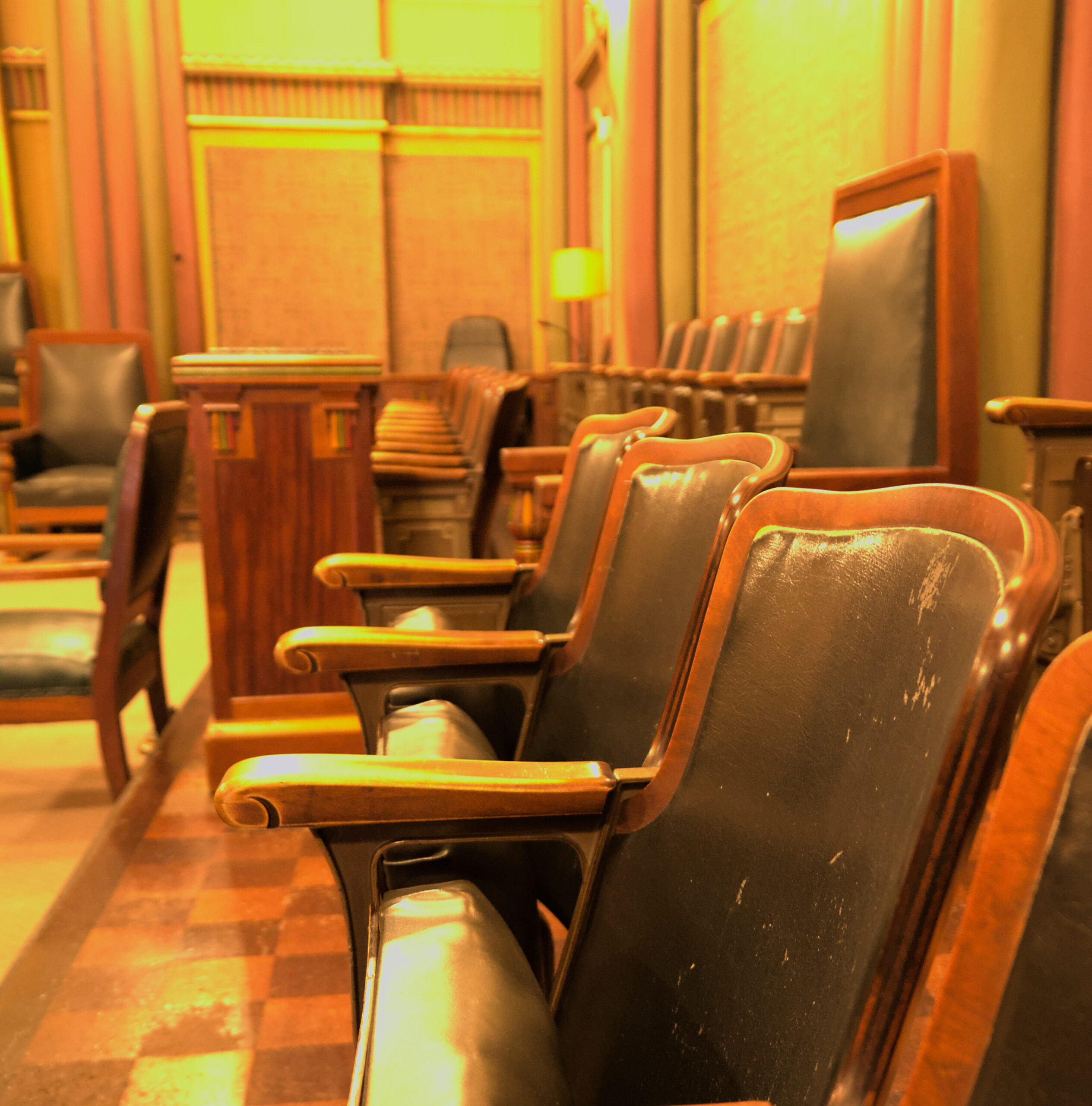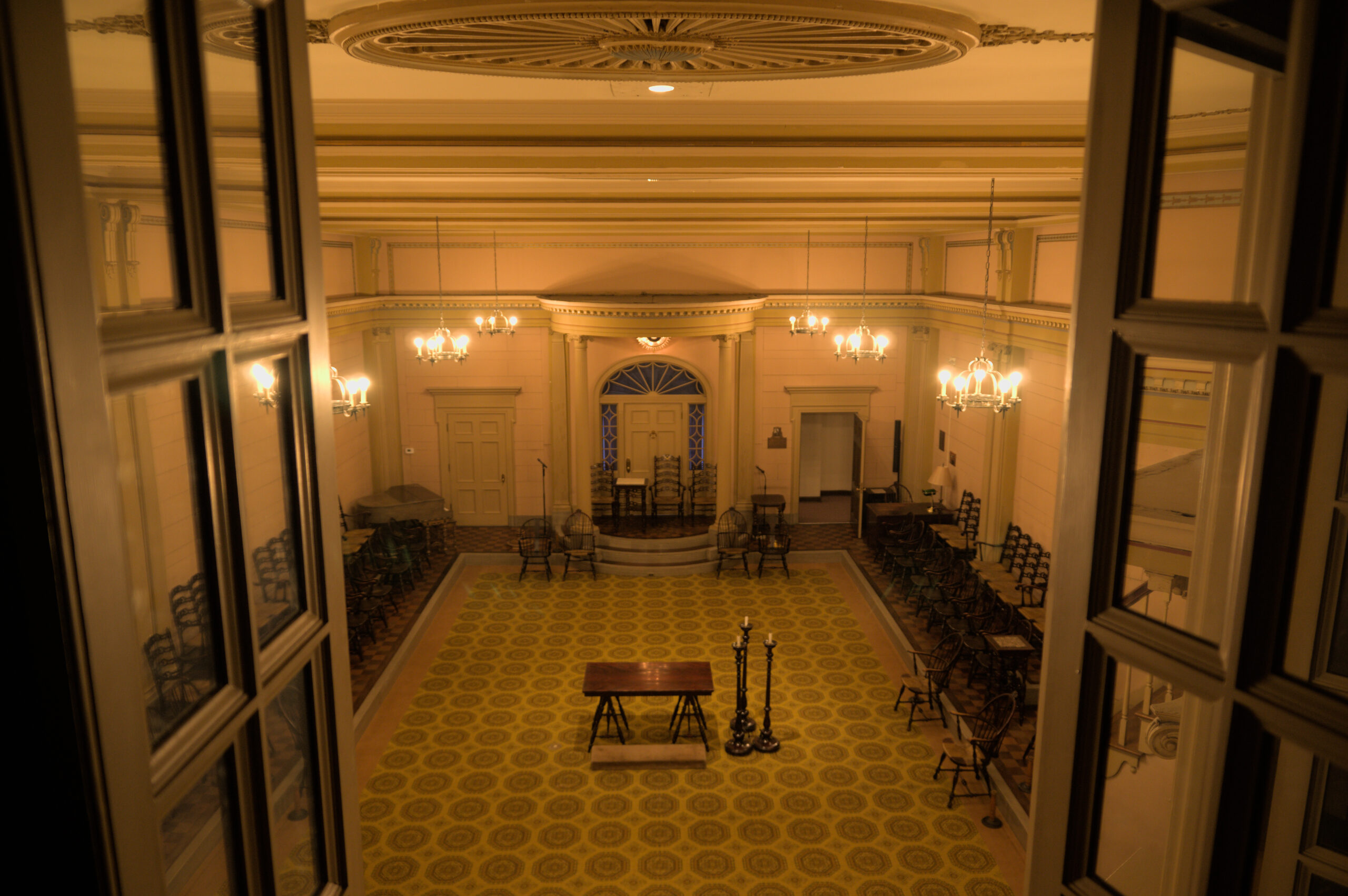 In the lodge there are several rooms to perform the rituals, or meetings, or appointing of new members. I was a DeMolay back in high school, but I wasn’t very active. I enjoyed it, but my mind was usually on riding my bike, or finding a way to “pass” a class with out doing more homework. The next room was an Egyptian themed room (and it was also called “The Egyptian” room). I took a few pictures in there, but they’re not worth pointing out individually. The colors were good in person, but my white balance made all these images appear to be very yellow (It was very yellow in there, due to the old lighting, architecture, and colors from when this building was built).