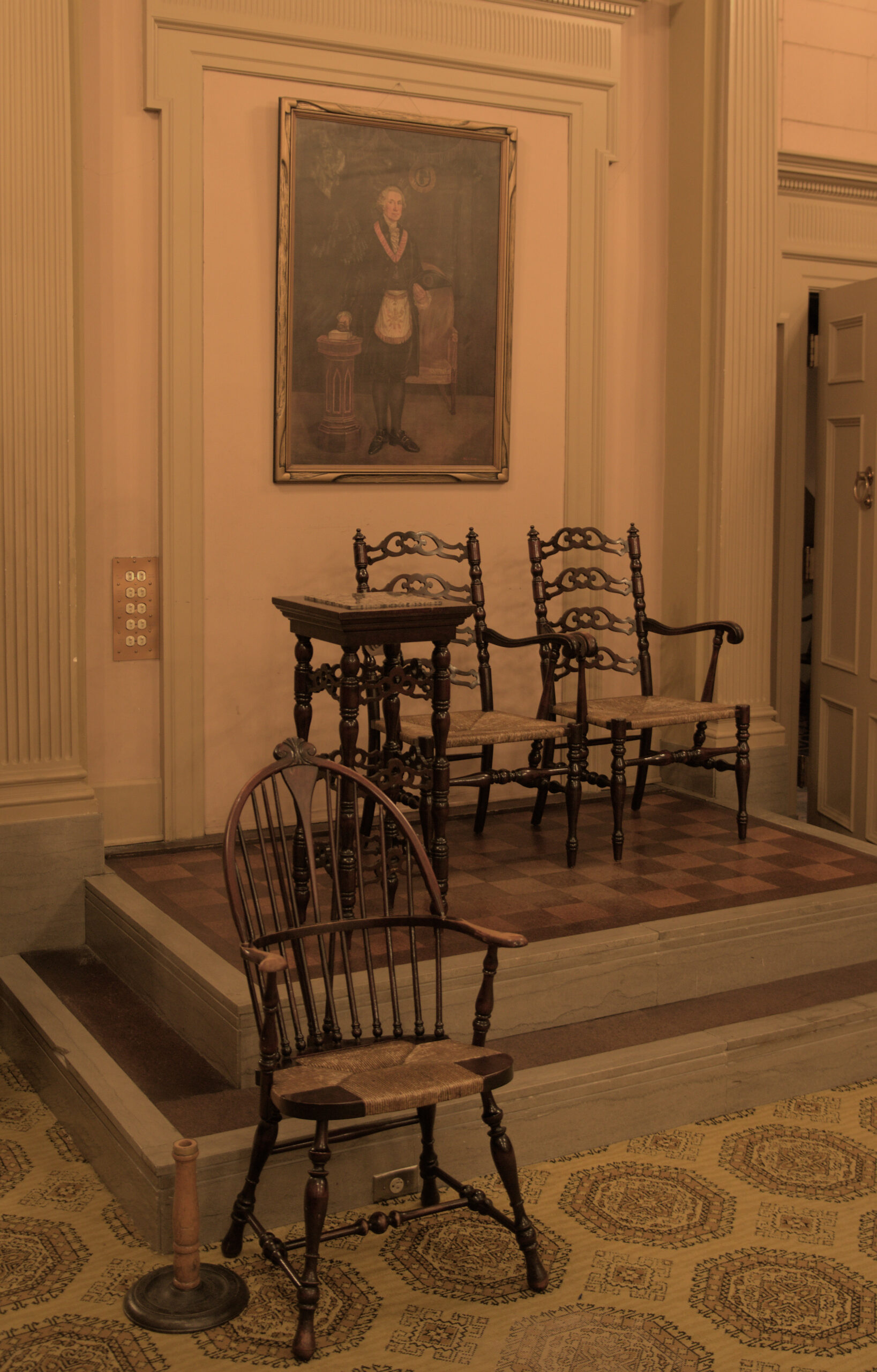 After wondering around the front area a little while, we did what normal unsupervised adults will do, and we went walk about around the lodge a little more. You’ll also notice, that mixed in with the pictures of members past, there are quite a few of our nation’s 1st President, George Washington. Yup, he was a Mason too.